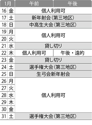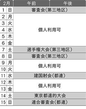 大会行事開催日以外に限り下記により個人使用することが出来ます。