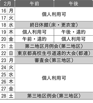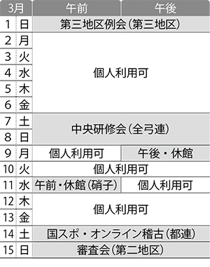 明治神宮武道場至誠館使用規定並びに(公財)全日本弓道連盟との申し合わせに則り、