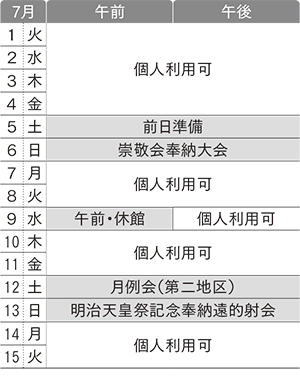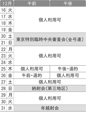 明治神宮武道場至誠館使用規定並びに(公財)全日本弓道連盟との申し合わせに則り、